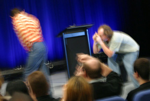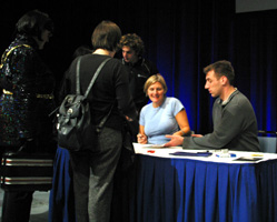 John and Dominic at the signing table; John taking a picture of Dominic's ass (I kid you not); Take a bow, guys. |